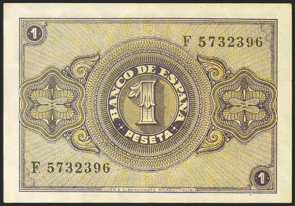 English 1 Peseta. October 12, 1937. Series F, last series issued. (Edifil 2021: 425a). It retains all its original finish. Almost Uncirculated.
