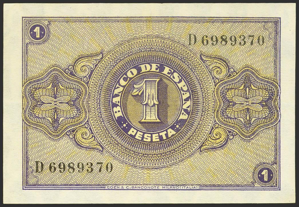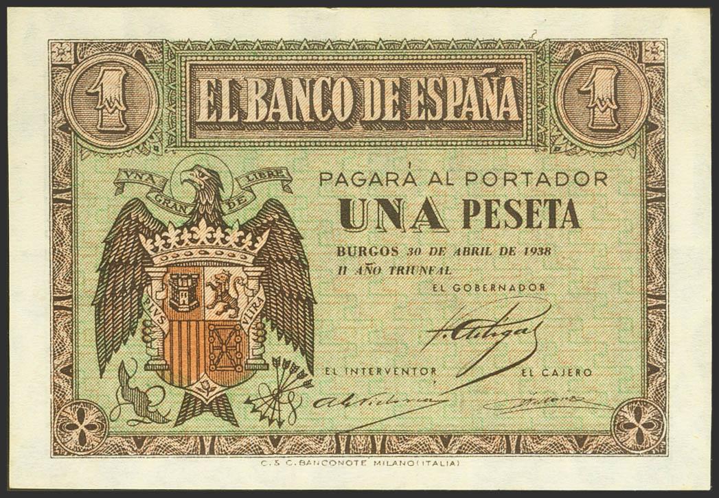 1 Peseta. April 30, 1938. Series D. (Edifil 2021: 428a). Original sizing. Uncirculated.