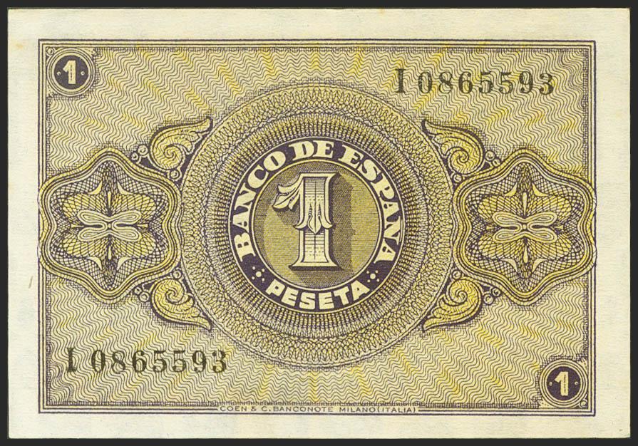 1 Peseta. April 30, 1938. Series I. (Edifil 2021: 428a). Original sizing. Uncirculated.