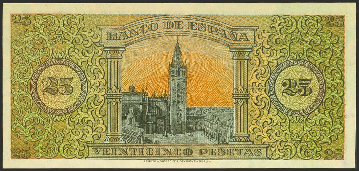 25 Pesetas. May 20, 1938. Series B. (Edifil 2021: 430a, Pick: 111a). Unusual in this quality, original sizing. Uncirculated.