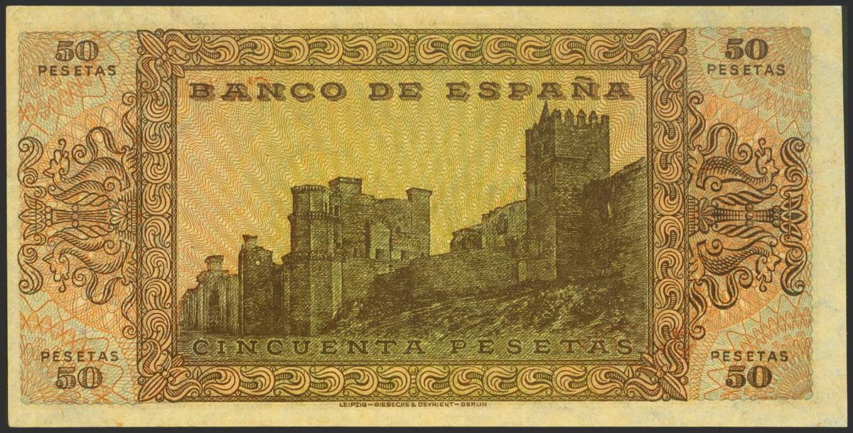 50 Pesetas. May 20, 1938. Series C. (Edifil 2021: 431a). Unusual, original sizing. Uncirculated.