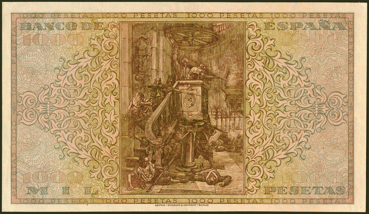 1000 Pesetas. May 20, 1938. Series A. (Edifil 2021: 434). Rare in this quality, it retains much of its original size. Extremely Fine.