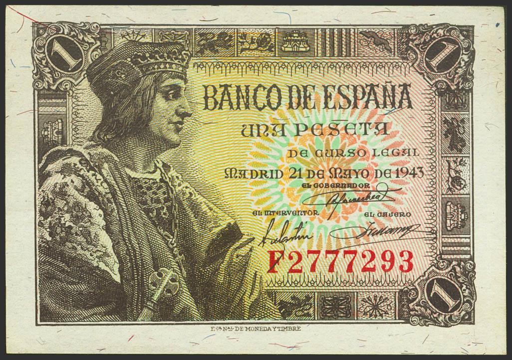 1 Peseta. May 21, 1943. Series F. (Edifil 2021: 447a). Original sizing. EBC+++.