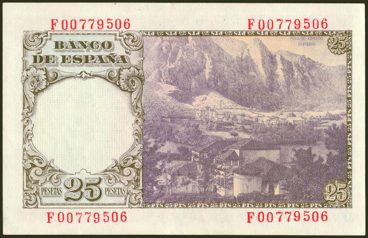 25 Pesetas. February 19, 1946. Series F. (Edifil 2021: 450a). Original sizing. Almost Uncirculated.