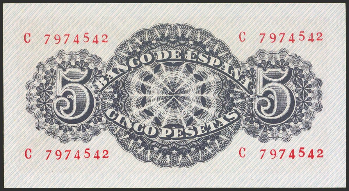 English 5 Pesetas. April 12, 1947. Series C. (Edifil 2021: 454a). It retains part of the original finish. Almost Uncirculated.