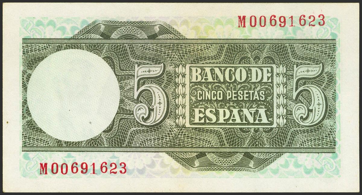 5 Pesetas. March 15, 1948. Series M. (Edifil 2021: 455a). Original sizing. Almost Uncirculated.