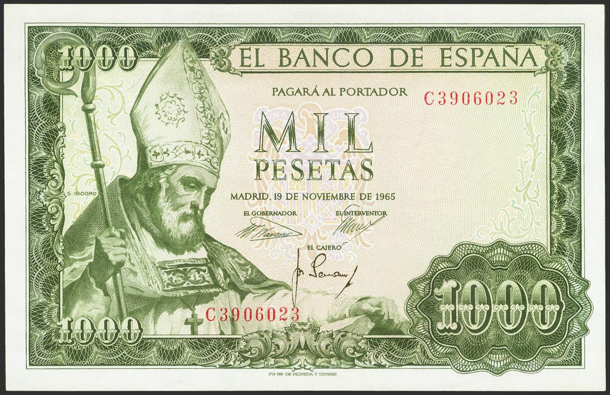 English 1000 Pesetas. November 19, 1965. Series C. (Edifil 2021: 471b). It retains all its original finish. Almost Uncirculated.