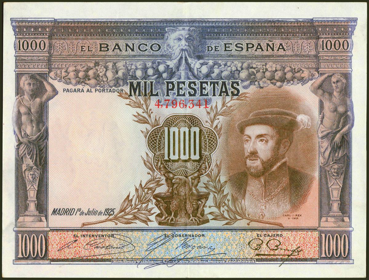 1000 Pesetas. July 1, 1925. Without series and numbering after 3646000. (Edifil 2021: 351). It retains much of the original finish. Extremely Fine.
