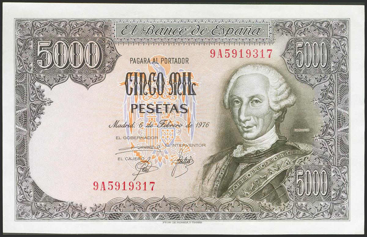 5000 Pesetas. February 6, 1976. Special series 9A. (Edifil 2021: 475b). Almost Uncirculated-.