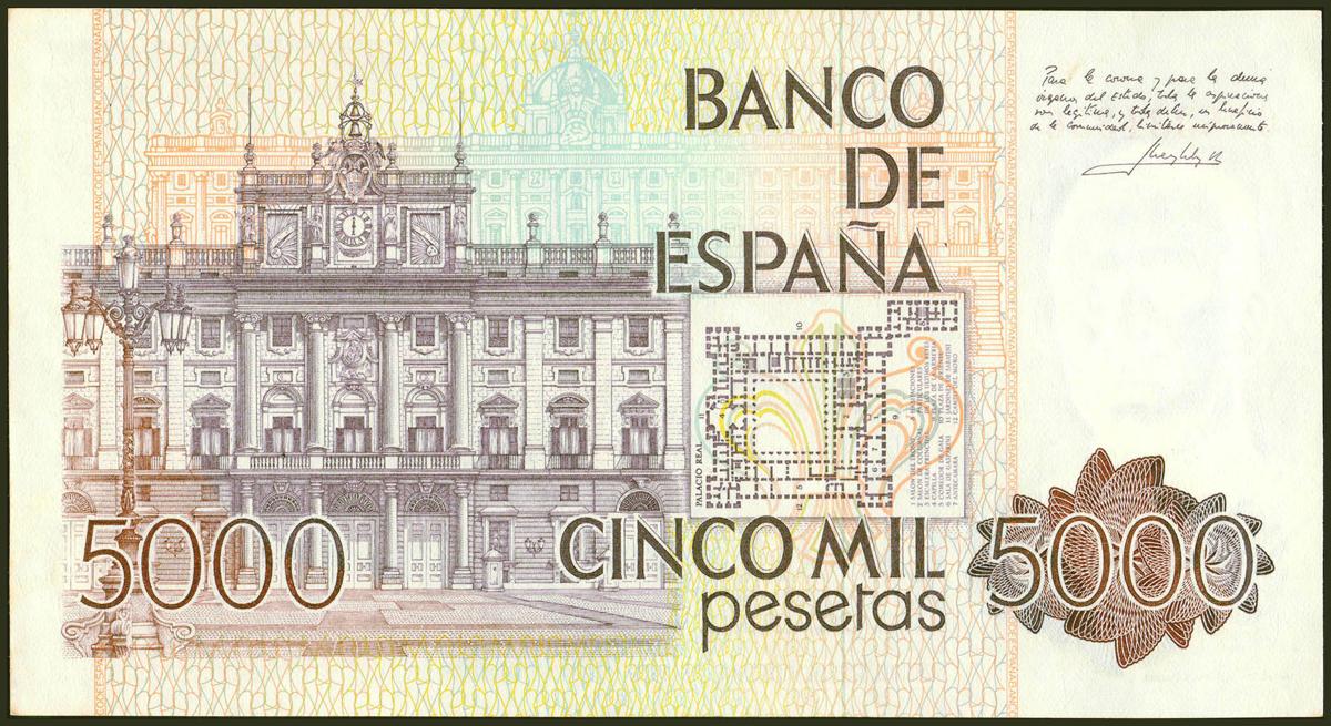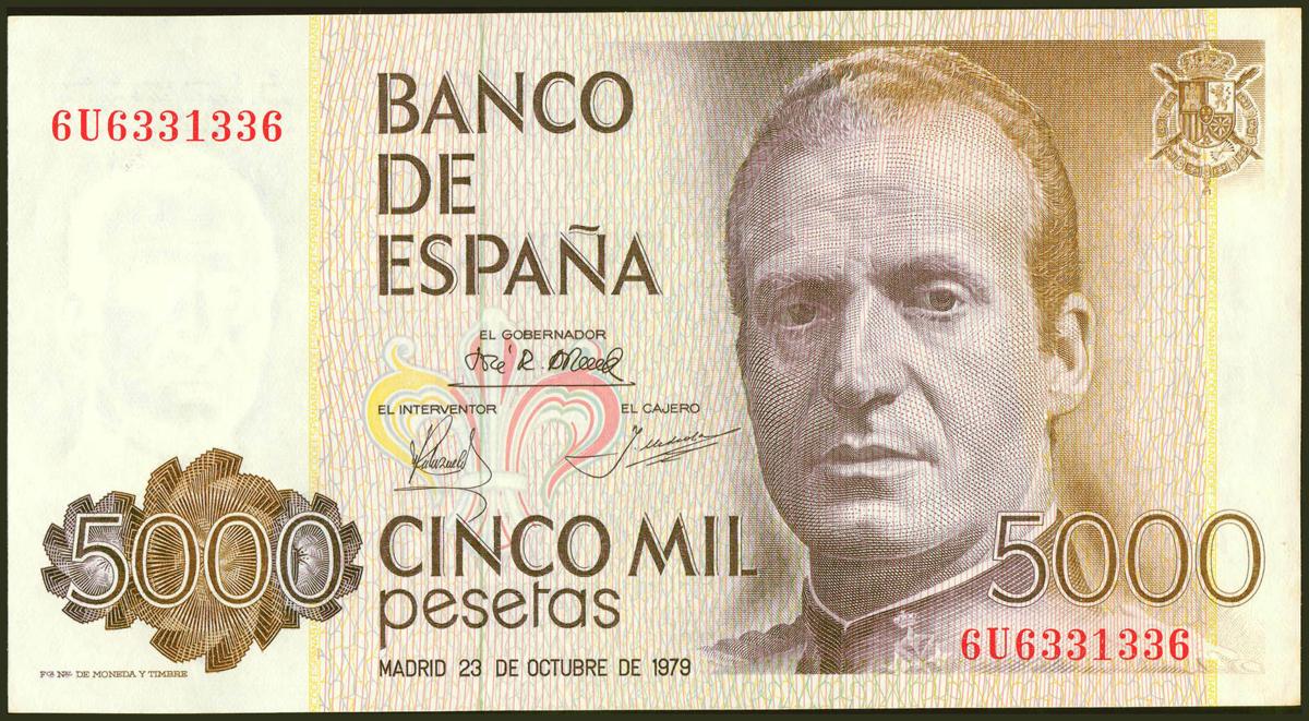 5000 Pesetas. October 23, 1979. Series 6U and capicúa numbering. (Edifil 2021: 478a). Almost Uncirculated.