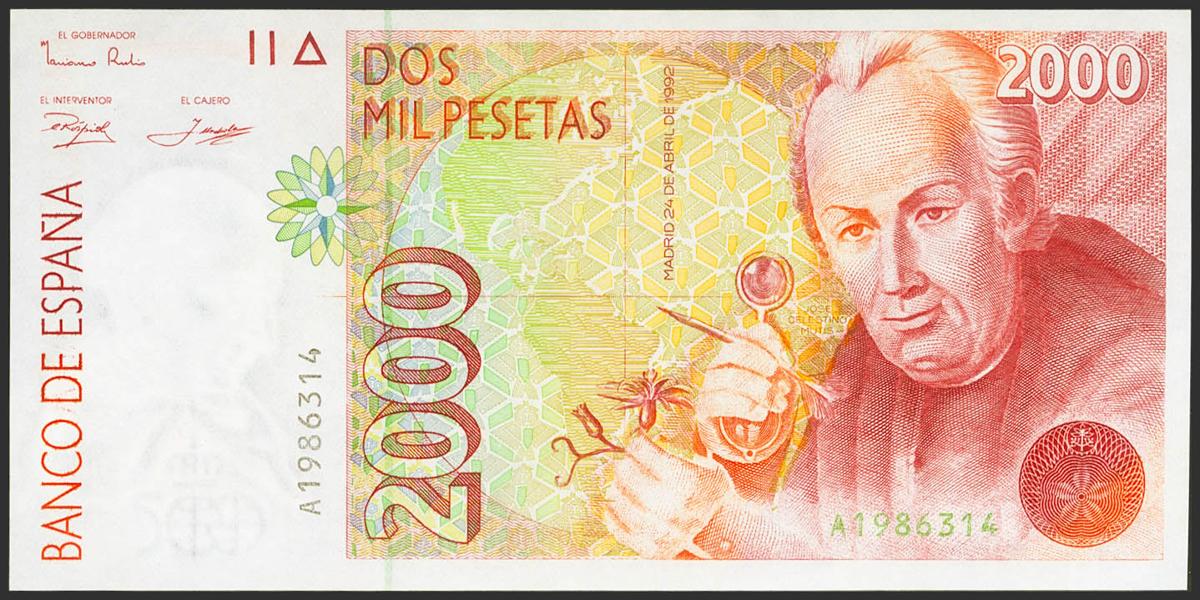 2000 Pesetas. April 24, 1992. Series A. (Edifil 2021: 482a). Uncirculated.