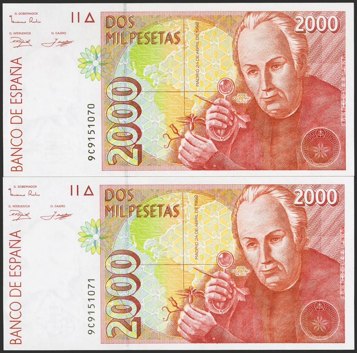 2000 Pesetas. April 24, 1992. Correlative couple. Special series 9C. (Edifil 2021: 482Ab). Uncirculated.