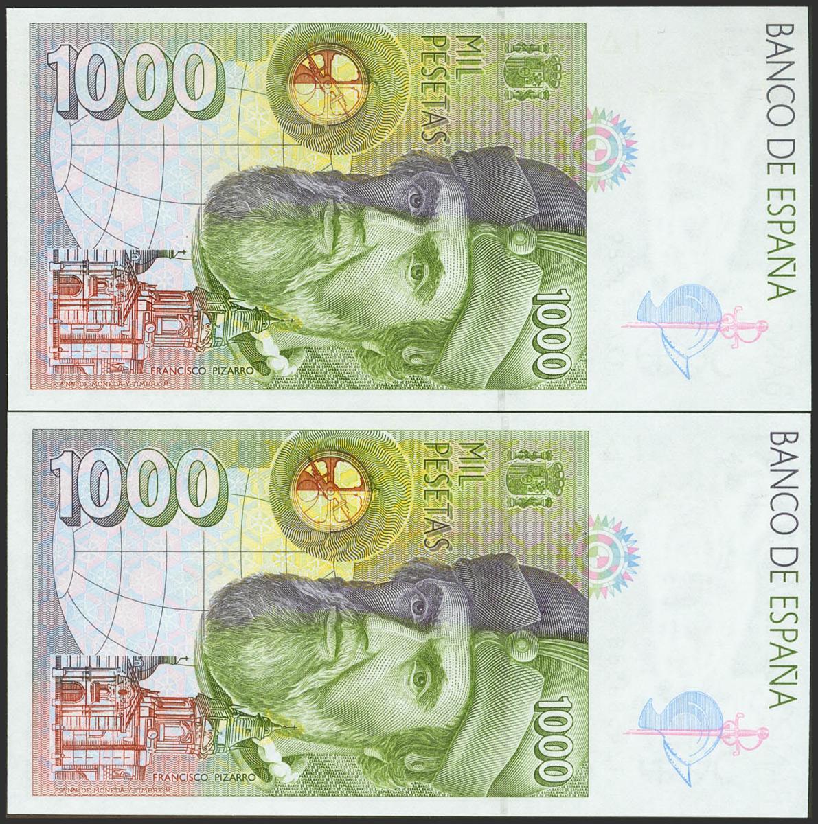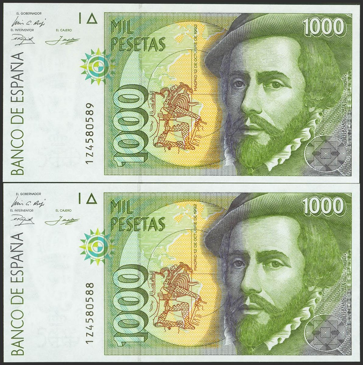 1000 Pesetas. October 12, 1992. Correlative couple. 1Z series. (Edifil 2021: 483b). Uncirculated.