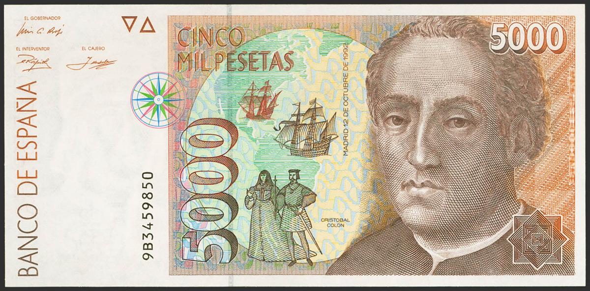 English 5000 Pesetas. October 12, 1992. Special series 9B. (Edifil 2021: 484b). Uncirculated.