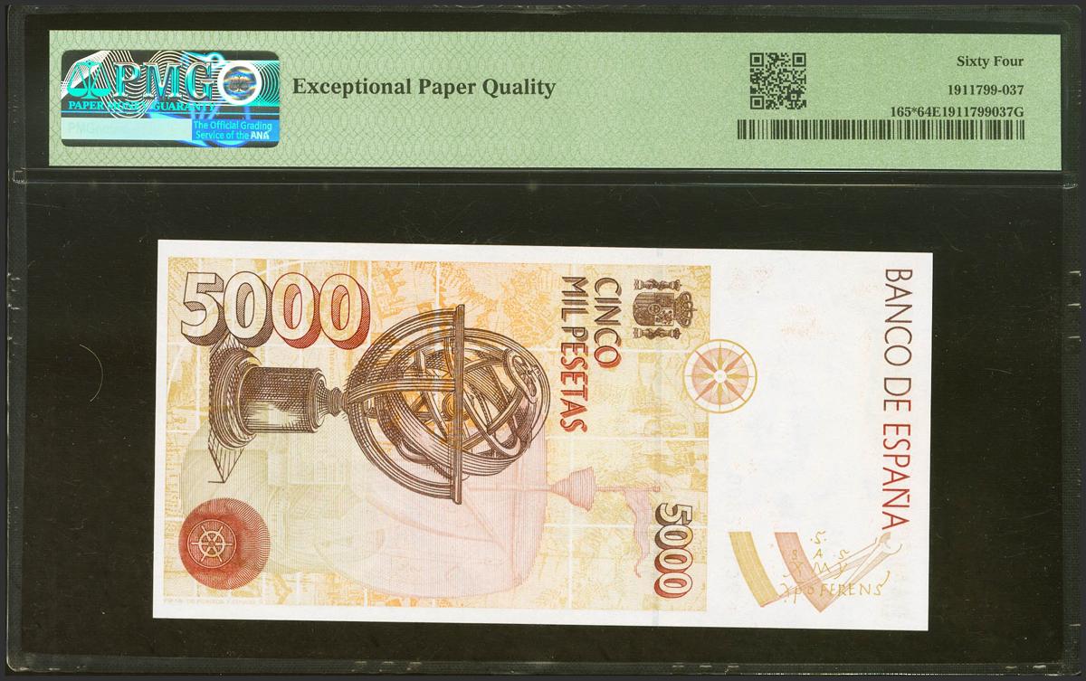 5000 Pesetas. October 12, 1992. Special series 9C. (Edifil 2021: 484b, Pick: 165*). Uncirculated. PMG64EPQ package.