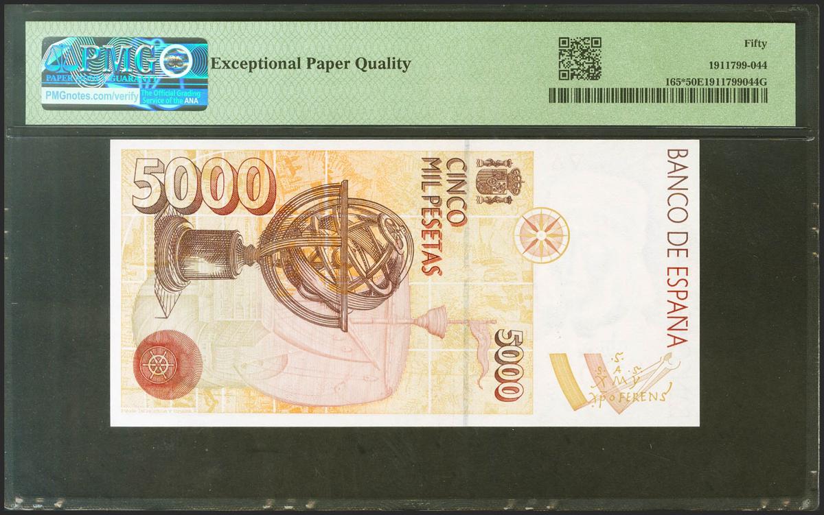 5000 Pesetas. October 12, 1992. Special series 9C. (Edifil 2021: 484b, Pick: 165*). Extremely Fine. PMG50EPQ package.