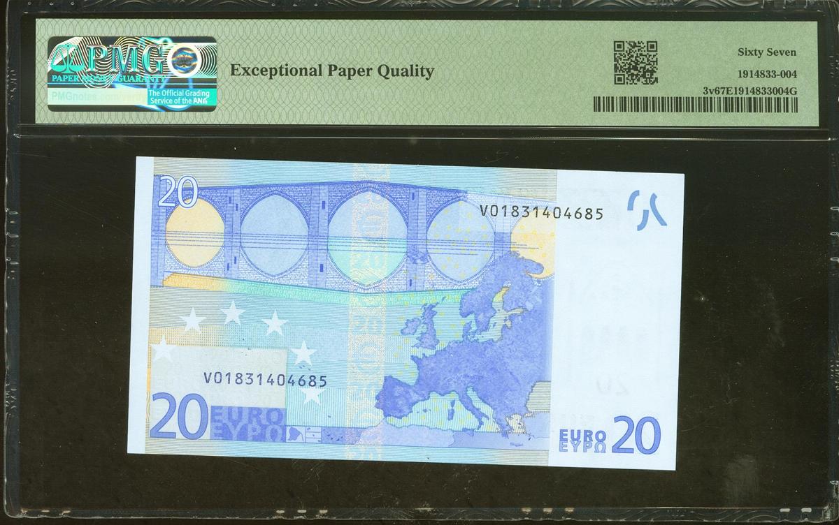 20 euros. January 1, 2002. Signature Duisenberg. Series V (Spain). (Edifil 2021: 488, Pick: 3v). Uncirculated. PMG67EPQ package.