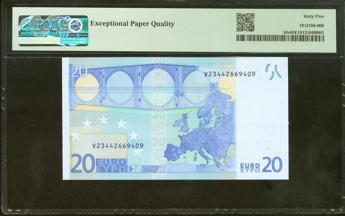 20 euros. January 1, 2002. Signature Trichet. Series V (Spain). (Edifil 2021: 488A, Pick: 10v). Uncirculated. PMG65EPQ package.