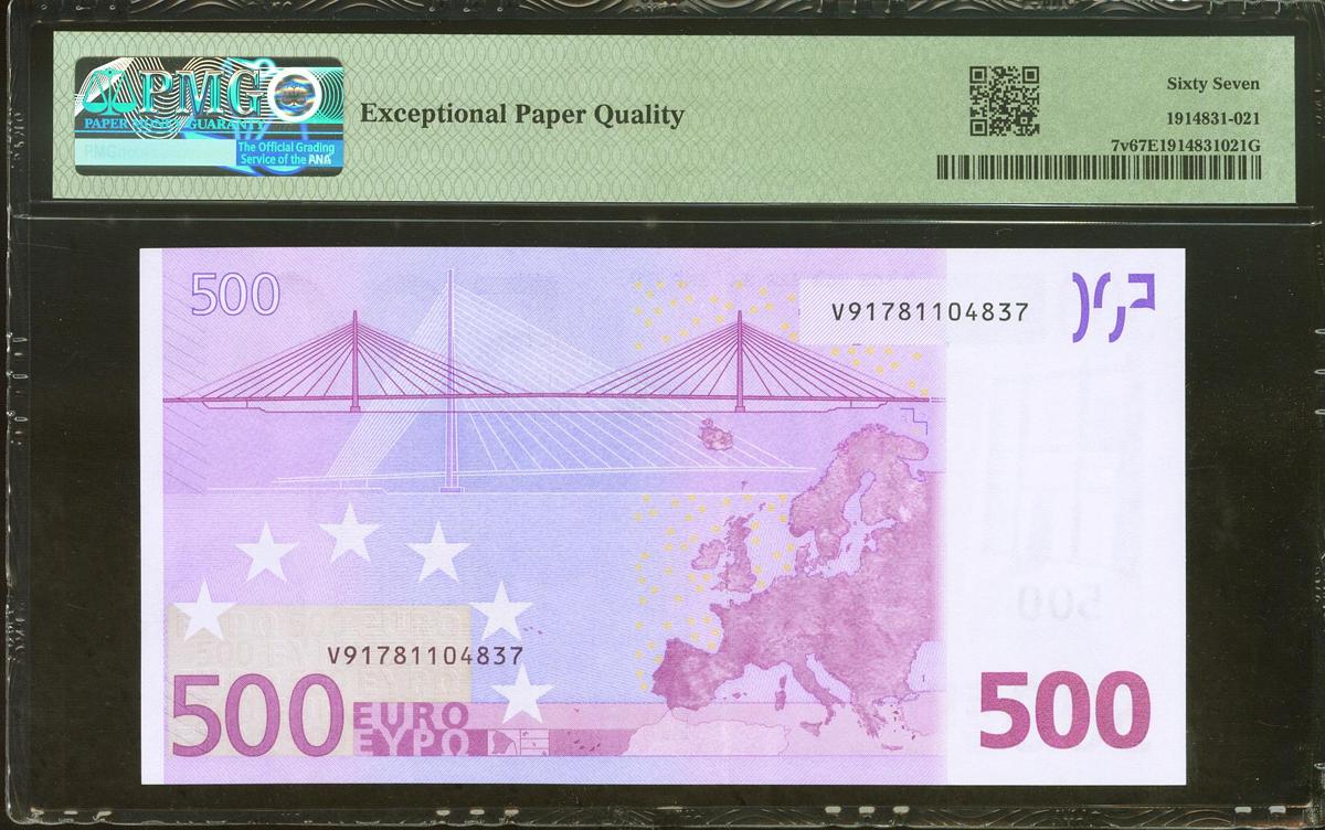 500 euros. January 1, 2002. Signature Duisenberg. Series V (Spain). (Edifil 2021: 492, Pick: 7v). Uncirculated. PMG67EPQ package.