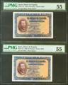 25 Pesetas. October 12, 1926. Correlative couple. Series B, last series broadcast. (Edifil 2021: 325a, Pick: 71a). Unusual in this quality. Good Extremely Fine. PMG55 encapsulated, both.