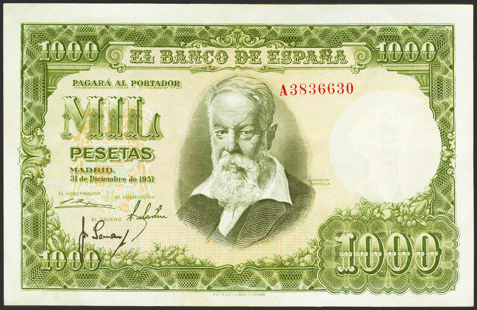 1000 Pesetas. December 31, 1951. Series A. (Edifil 2021: 463a). It retains much of its original finish. Extremely Fine.