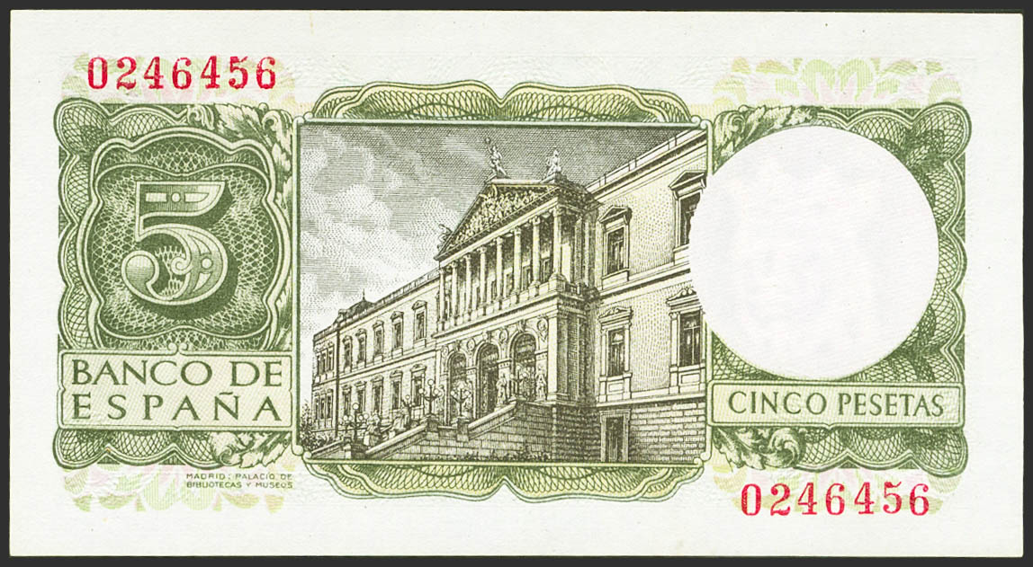 5 Pesetas. July 22, 1954. No series. (Edifil 2021: 466, Pick: 146a). Original sizing. Almost Uncirculated.