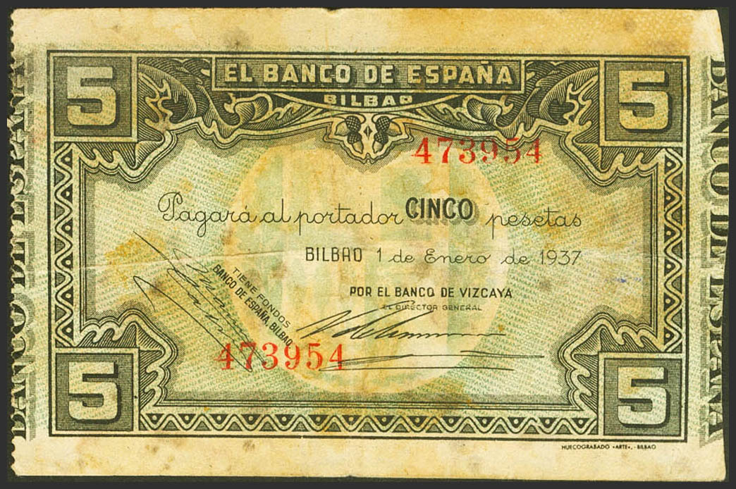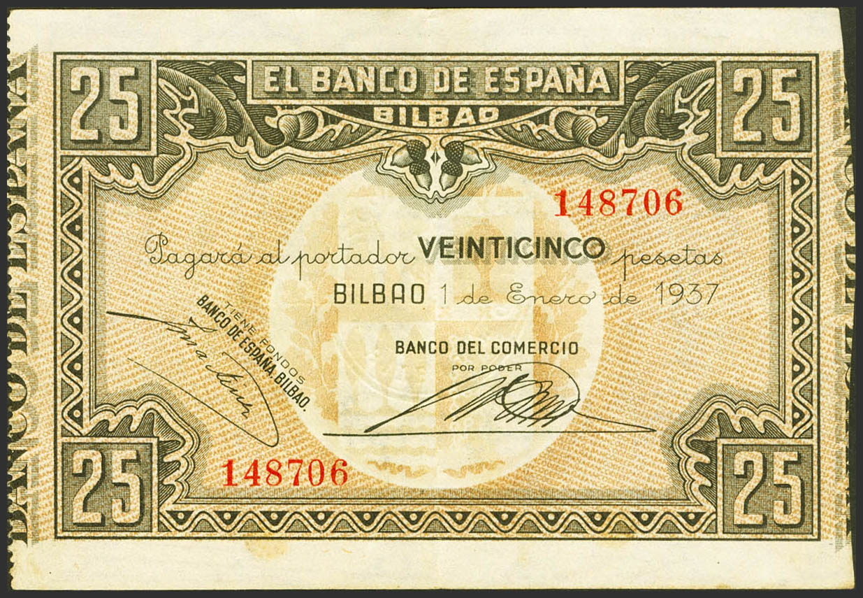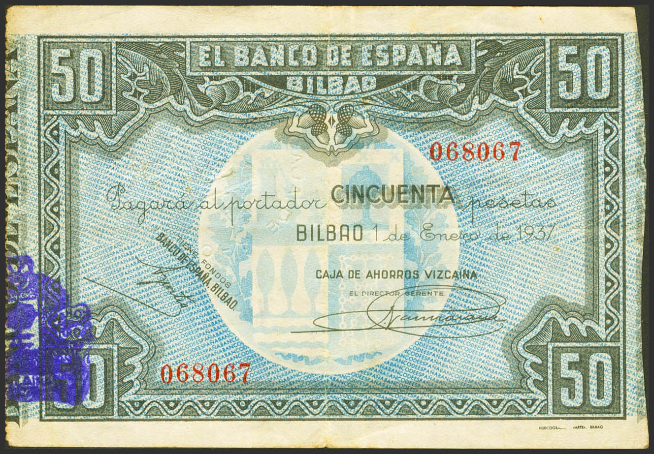 Set of 4 Bank of Spain banknotes, all of them issued between 1925 and 1936 and with various dry or rubber stamps, in different qualities. TO EXAMINE.