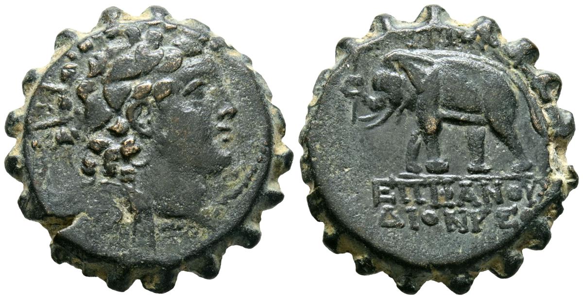 SELEUCID KINGS, Antiochos VI Dionysos. Ae22. (Ae. 8.46g/22mm). 144-142 BC Antioch. (Seaby 2006). Anv: Radiated head of Antiocos VI to the right. Rev: Elephant on the left carrying a torch, around Greek legend. Very Fine.