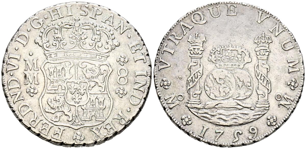 FERDINAND VI (1746-1759). 8 Reales (Ar. 26.90g/39mm). 1759. Mexico MM. (Cal-2019-495). Good Very Fine.