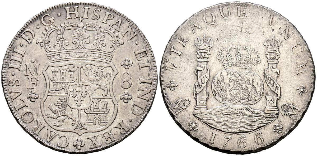 CARLOS III (1759-1788). 8 Reales (Ar. 26.98g/39mm). 1766. Mexico MF. (Cal-2019-1090). Very Fine. Repaint on reverse.