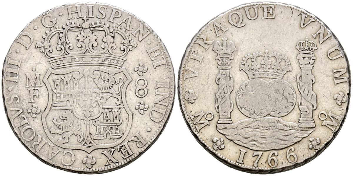 CARLOS III (1759-1788). 8 Reales. (Ar. 26.74g/38mm). 1766. Mexico MF. (Cal-2019-1090). Almost Very Fine.
