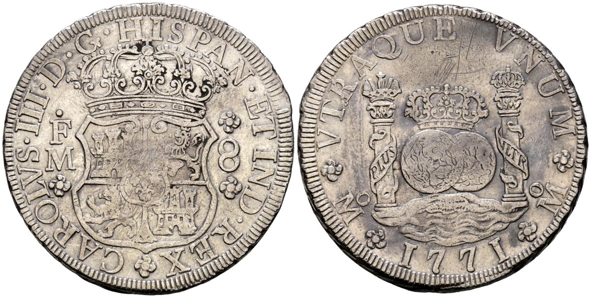 CARLOS III (1759-1788). 8 Reales (Ar. 26.90g/40mm). 1771. Mexico MF. (Cal-2019-1103). Very Fine.