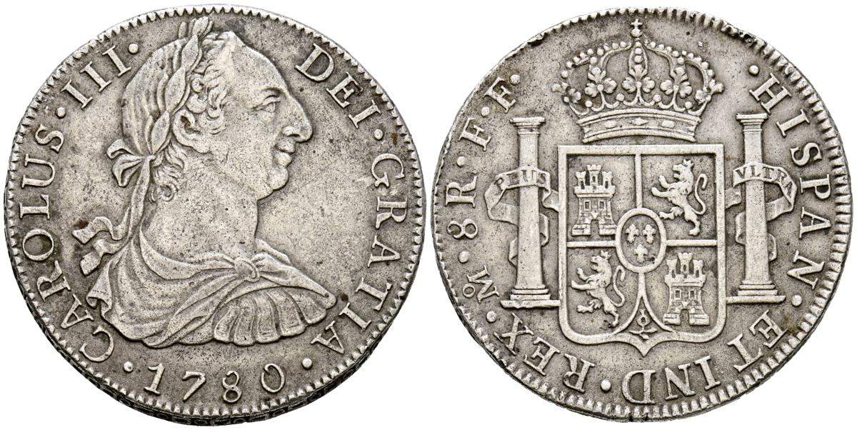 CARLOS III (1759-1788). 8 Reales. (Ar. 26.79g/39mm). 1780. Mexico FF. (Cal-2019-1120). Good Very Fine.
