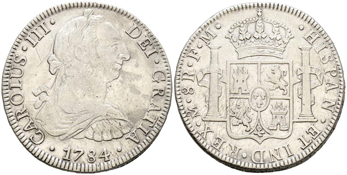 English CARLOS III (1759-1788). 8 Reales. (Ar. 26.75g/39mm). 1784. Mexico FM. (Cal-2019-1126). Very Fine.