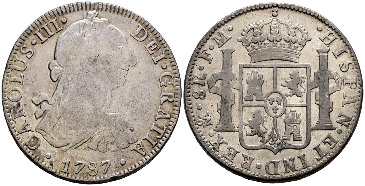 English CARLOS III (1759-1788). 8 Reales. (Ar. 26.73g/39mm). 1787. Mexico FM. (Cal-2019-1131). Very Fine.