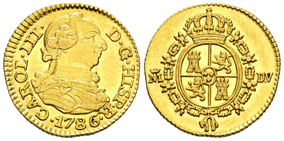 CARLOS III (1759-1788). 1/2 Escudo. (Au. 1.67g/14mm). 1786. Madrid DV. (Cal-2019-1280). Good Extremely Fine. Tiny scratch.