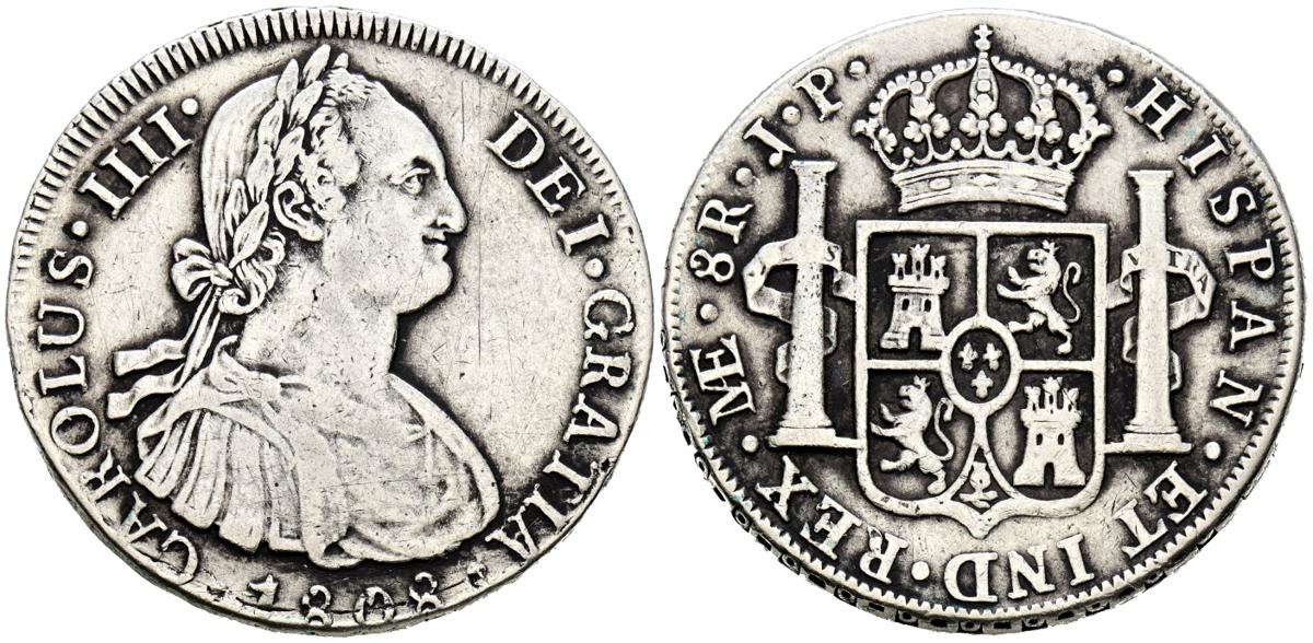 English CARLOS IV (1788-1808). 8 Reales. (Ar. 26.34g/39mm). 1808. Lima JP. (Cal-2019-928). Almost Very Fine.