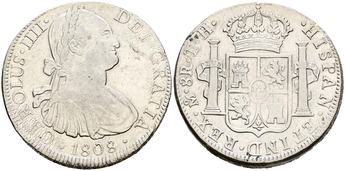 CARLOS IV (1788-1808). 8 Reales. (Ar. 27.05g/39mm). 1808. Mexico TH. (Cal-2019-988). Very Fine.