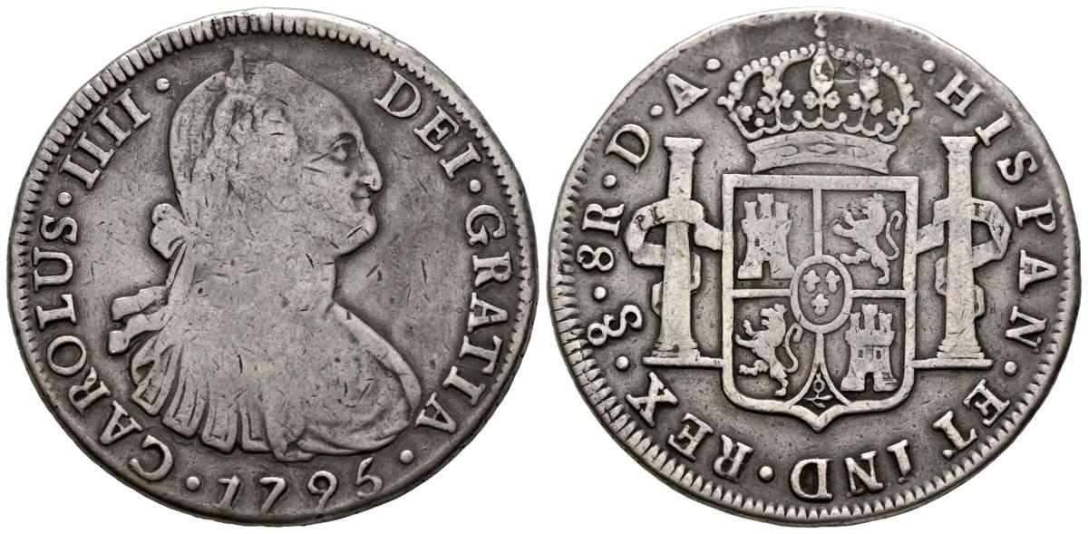 CARLOS IV (1788-1808). 8 Reales. (Ar. 26.49g/41mm). 1795. Santiago DA. (Cal-2019-1024). Almost Very Fine. Rare specimen.