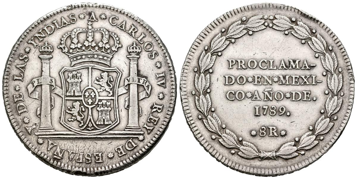 CARLOS IV (1788-1808). Medal with a value of 8 Reales. (Ar. 26.96g/39mm). 1789. Proclamation in Mexico. (Cal-2019-947). Good Very Fine. Tap on song. Cleaned.