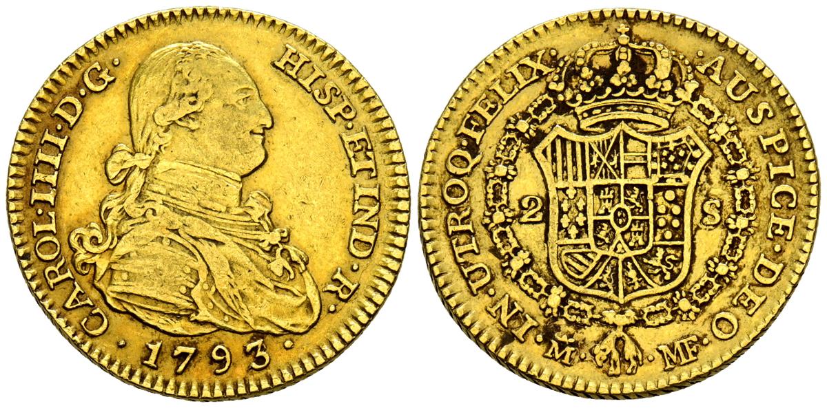 CARLOS IV (1788-1808). 2 Escudos. (Au. 6.77g/21mm). 1793. Madrid MF. (Cal-2019-1279). Very Fine.