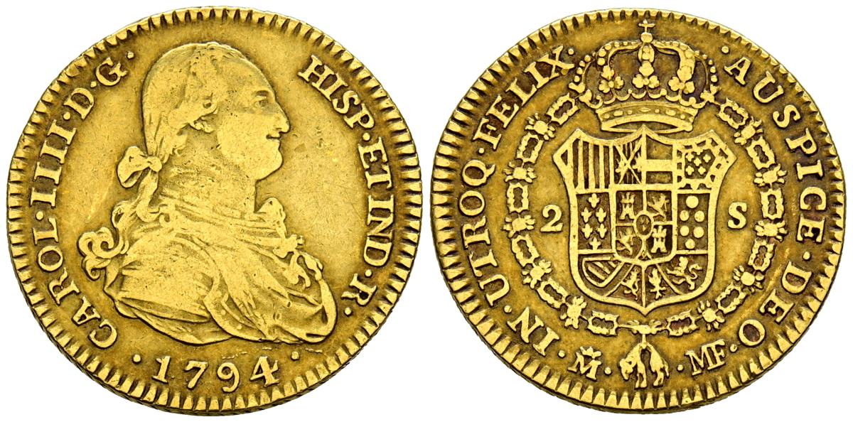 CARLOS IV (1788-1808). 2 Escudos. (Au. 6.72g/21mm). 1794. Madrid MF. (Cal-2019-1282). Almost Very Fine/ Very Fine.