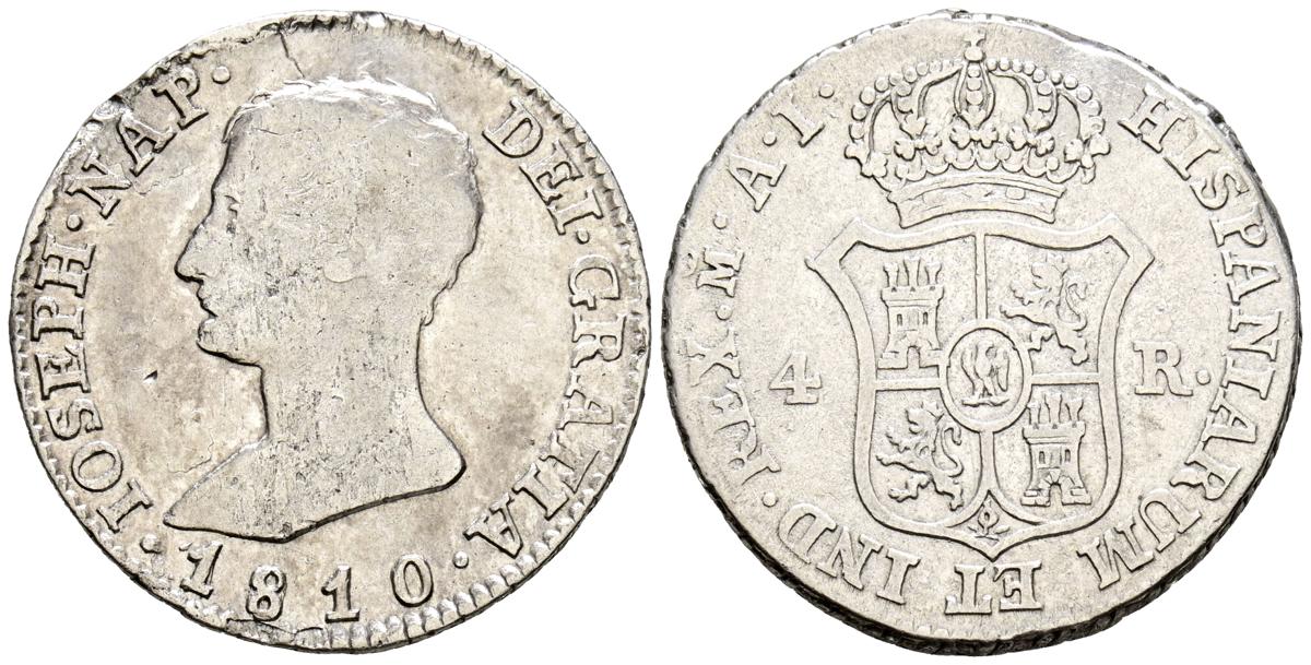 English JOSEPH NAPOLEON (1808-1813). 4 Reales. (Ar. 5.70g/26mm). 1810. Madrid AI. (Cal-2019-14). Good Fine.