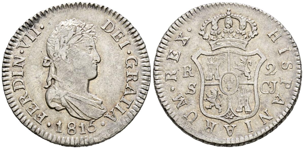 FERDINAND VII (1808-1833). 2 Reales. (Ar. 5.97g/27mm). 1815. Sevilla CN. (Cal-2019-951). Good Very Fine. Remnants of original shine.