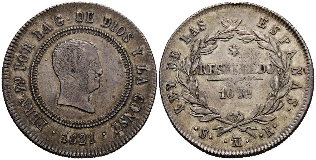 FERDINAND VII (1808-1833). 10 Reales. (Ar. 13.50g/33mm). 1821. Madrid SR. (Cal-2019-1088). Good Very Fine. Beautiful patina.