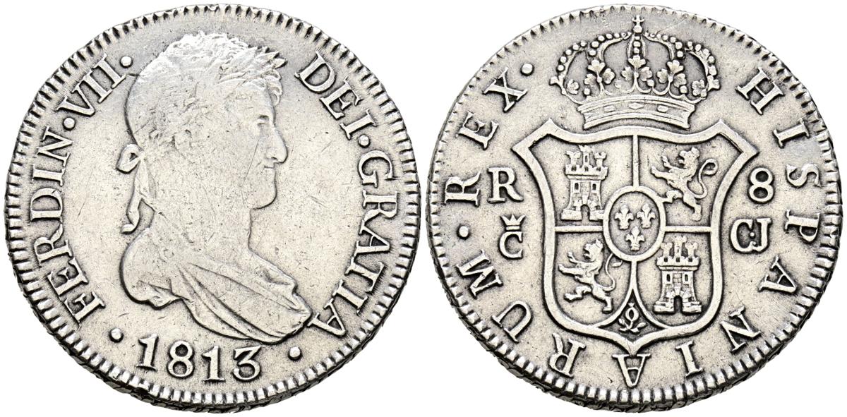FERDINAND VII (1808-1833). 8 Reales. (Ar. 27.03g/39mm). 1813. Cádiz CJ. (Cal-2019-1153). Very Fine.
