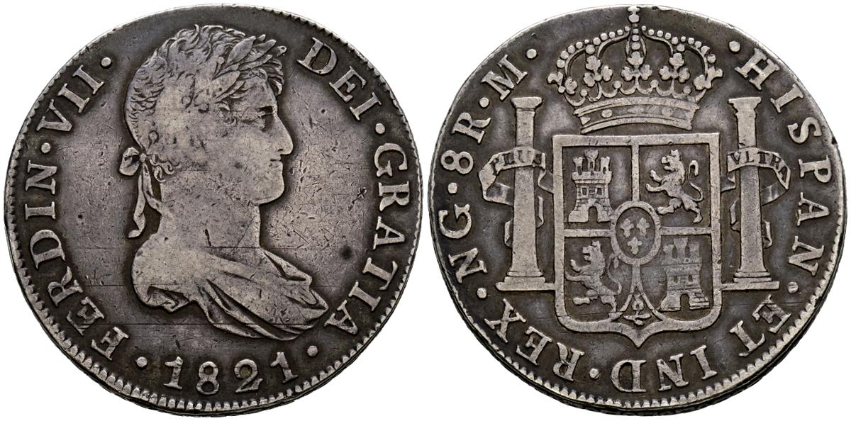 English FERDINAND VII (1808-1833). 8 Reales. (Ar. 26.81g/39mm). 1821. Guatemala M. (Cal-2019-1236). Almost Very Fine.