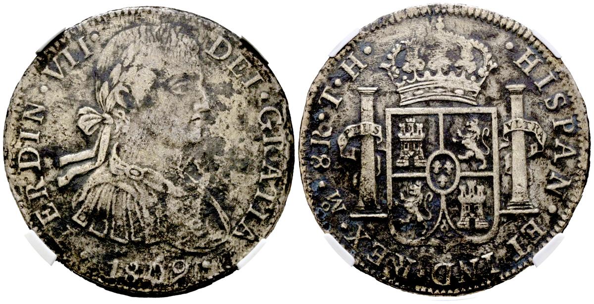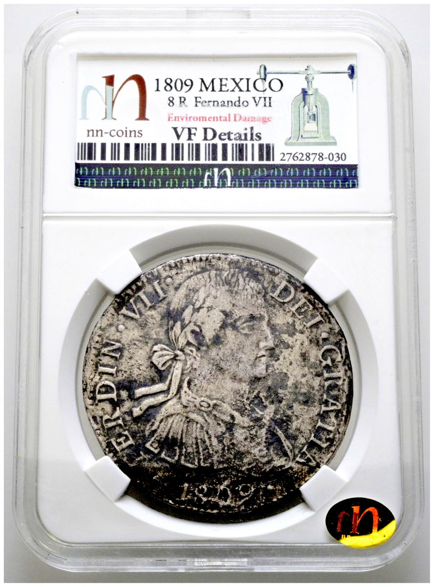 English FERDINAND VII (1808-1833). 8 Reales. (Ar. 27.00g/38mm)*. 1809. Mexico TH. (Cal-2019-1308). Encapsulated by NN Coins. VF Details. Oxidations. *Theoretical weight and measurement.