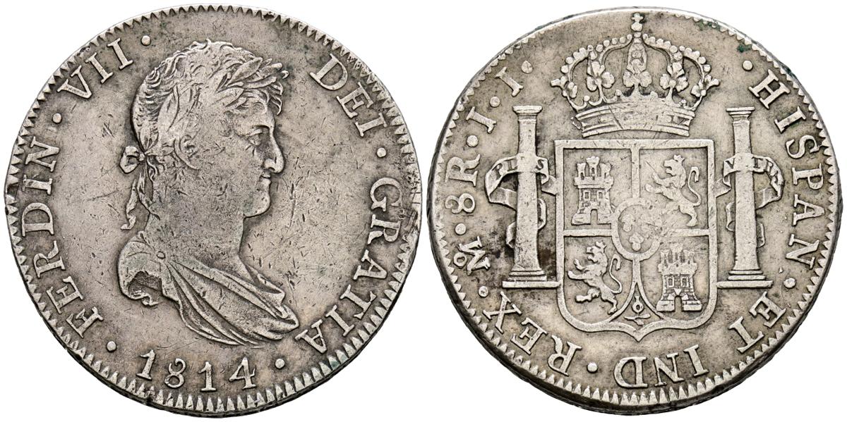 English FERDINAND VII (1808-1833). 8 Reales. (Ar. 26.87g/39mm). 1814. Mexico JJ. (Cal-2019-1326). Almost Very Fine.
