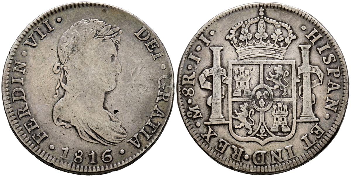 FERDINAND VII (1808-1833). 8 Reales. (Ar. 26.64g /39mm). 1816. Mexico JJ. (Cal-2019-1331). Good Fine/ Almost Very Fine.